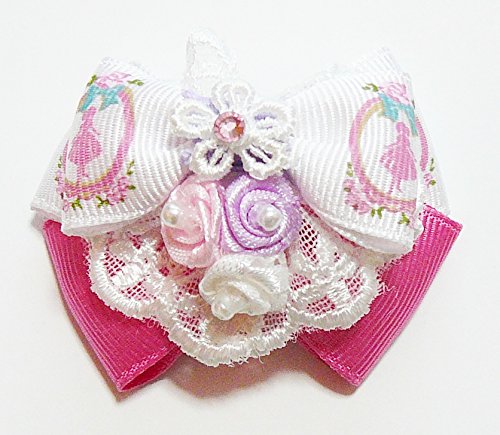 フィードゥリズ Fee du lis オリジナル ハンドメイド ダブル バレリーナ リボン ローズ ラインストーン ヘアゴム White:ホワイト