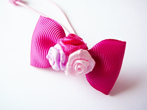 オリジナル ハンドメイド バレエ トリプル ローズ リボン ヘアゴム チェリー 濃ピンク