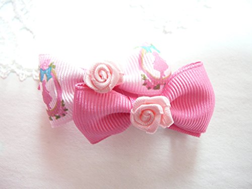 オリジナル ハンドメイド ピンク バレリーナ リボン ローズ バレッタネット No.81