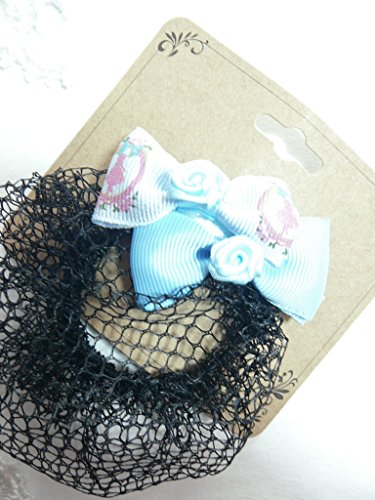 オリジナル ハンドメイド ブルー バレリーナ リボン ローズ バレッタネット No.82