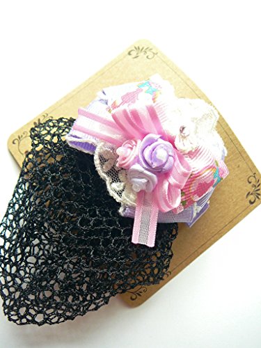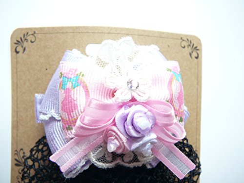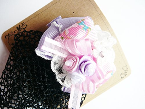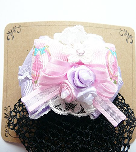 オリジナル ハンドメイド ライラック ホワイトピコット リボン フラワー レース ローズ ラインストーン バレッタネット No99