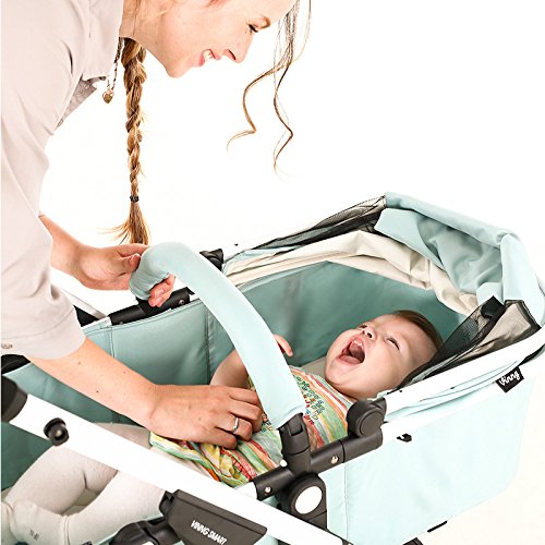 ★座面高約68cmの両対面ハイシートベビーカーです、ベビーに対して視野が広くて、車のガスから防ぎます。