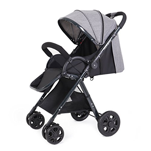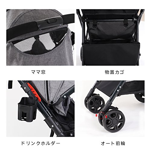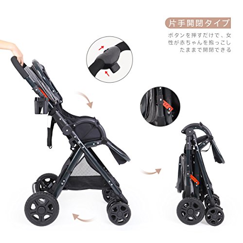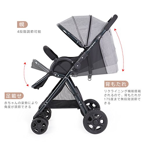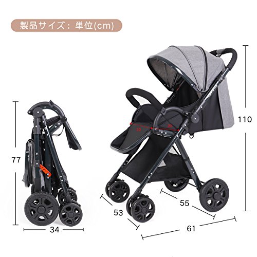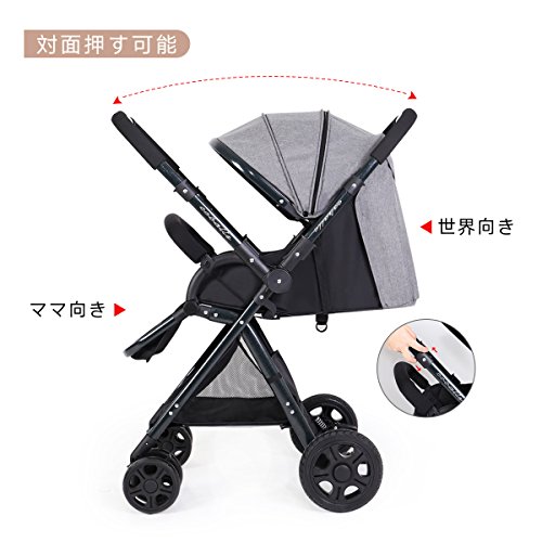 Feemom b型ベビーカー 両対面ベビーカー 軽量 ハイシート コンパクト 片手開閉タイプ (グレー)