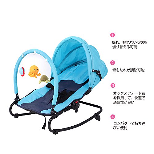 - ロッキング機能がストップすることもでき、子供が大きくなるとベビーシートとしても使えます。安全シートベルトも付き、子供のいたずらを防止できます。