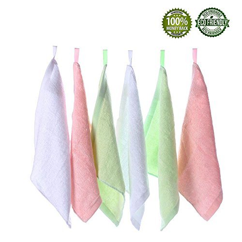 Premium Quality Washcloths: Made from 100% natural organic bamboo, which makes awesome features-dye-free, bleach-free and chemical-free, reusable, hypoallergenic.;Protect babies with these washcloths: Super soft touch keeps your baby's face and body clean &dry with no worry of scratching their delicate skin.;Warm Friendly Design: Bright Colors will capture baby's attention and soft towel surface wipe and touch your baby face and body very gently. You baby will love them immediately. And with loops, it's convenient for you to hang them. Best gift for Baby's health.;Multipurpose: Feibi baby super absorbent washcloths can be also used as wipes while infants' spilling milk, drooling and toddlers' messy self-feeding, besides used as face towels, bath towels.;Needed by Whole Family: Large size 10x10 inches is not only for babies, kids but also for you! So environmental and economical products! 6-pack meets whole family need. Take away your regular washcloths now and add these washcloths in cart on the right upper button.