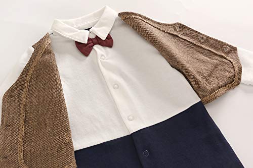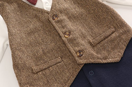 Feidoog ベビー ボーイズ ロンパース フォーマル 紳士服 洋服 ベスト スーツ 蝶ネクタイ おしゃれ かわいい 長袖 秋冬 綿 結婚式 ブラウン 6-9M