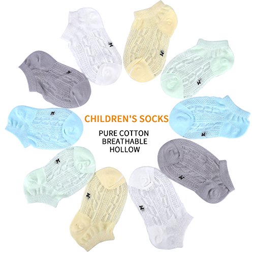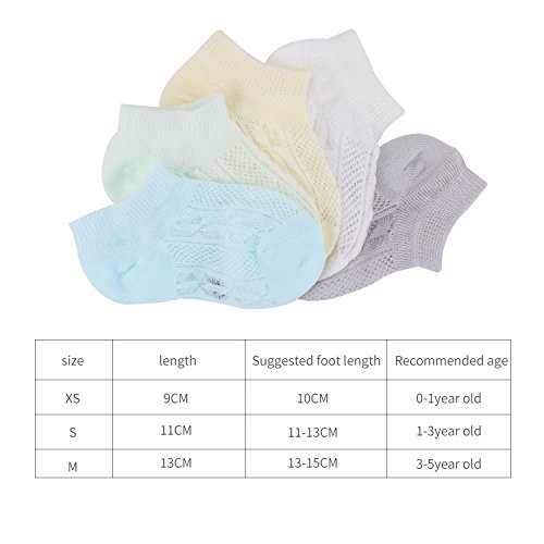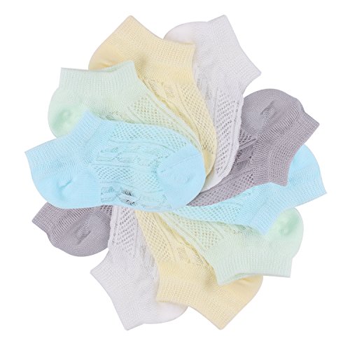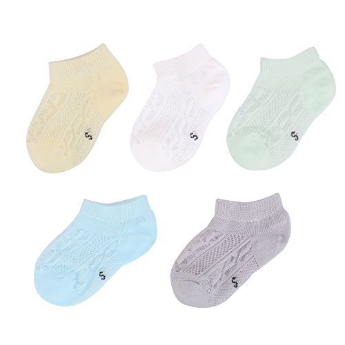 Feidoog 子供ソックス キッズ ショートソックス 赤ちゃん 靴下 通気 無地 爽やか ベビー メッシュ 薄型 カラフル 可愛い 女の子 幼児用 男の子 新生児 春夏 5足セット S(0-1歳)