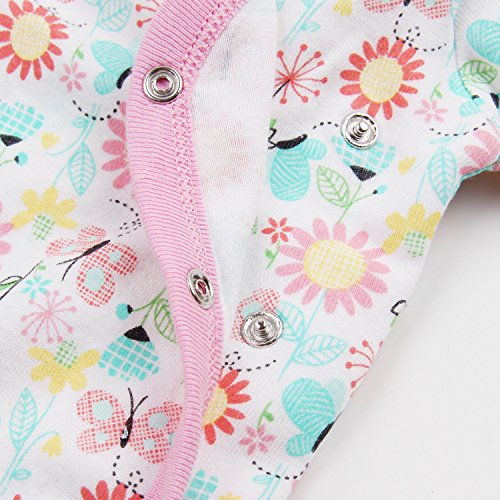 Feidoog 半袖ボディースーツ ロンパース 新生児 赤ちゃん 綿100% 前開きタイプ Baby ベビー服女の子 肌着パジャマ 可愛い 夏服 ピンク 12M
