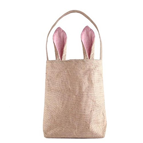 うさぎ耳 ハンドバッグ バニーイヤー かわいい エコバッグ リネン製 イースターデザイン レディース デュアル レイヤ (ピンク)