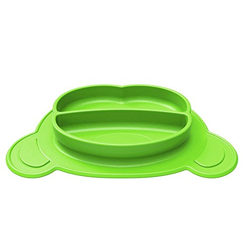 Feili ベビー食器 シリコン キッズ 子供 ベビー ボウル プレート シリコン製ボウル ベビープレースマット 吸盤付 滑り止め ボウル 子供 幼児 赤ちゃん用 猿模様 (グリーン)