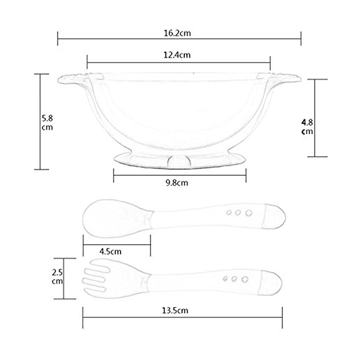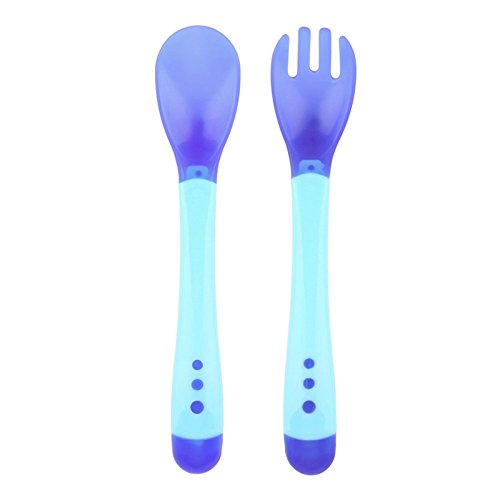 - カトラリーの先端は温度センサーの機能が付き、お湯の温度が40度以上過ぎると、先端の色は薄くなります。親はそれを基づいて子供の食事によるやけどを防ぐことができます。