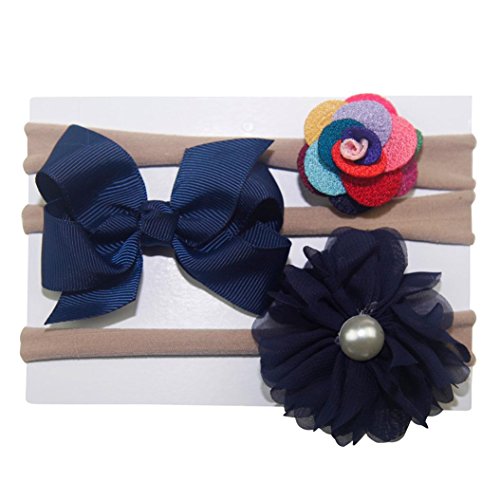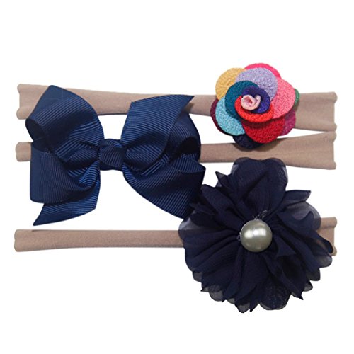 Feiscat 3点セット ヘッドバンド キッズ 髪飾り ベビーヘアバンド ベビー ヘアリボン 赤ちゃん リボン 写真 可愛い 花柄 プリンセス 無地 新生児 キッズ こども 子供 出産祝い 女の子 ベビー用品 シンプル コスプレ (Free, E)