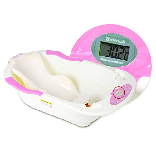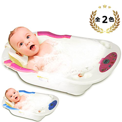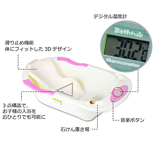 Felimoa 新生児用ベビーバス 温度計付き お風呂 安心設計 床置きタイプ 20通り以上の音楽で赤ちゃんが喜ぶ (ピンク)