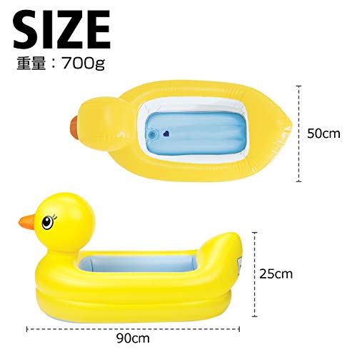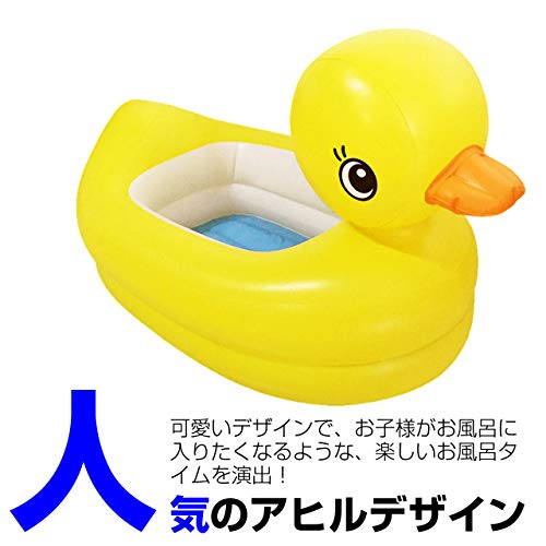 - 可愛いアヒルデザインのベビーバスでお風呂の時間がとっても楽しい!空気式なので収納場所にも困らず、お子さんと楽しいバスタイムを過ごせます。プールに持っていけばプカプカ浮き輪代わりにもなる便利なベビーバスです。
