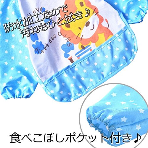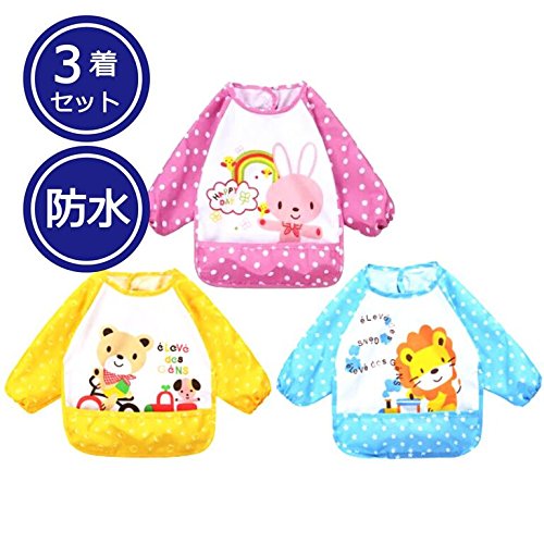 Felimoa 防水 ベビーエプロン 長袖 ポケットつき 動物柄 3種類