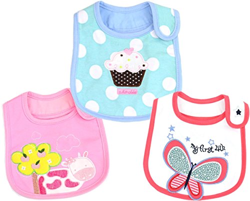 Felimoa 赤ちゃん よだれかけ 布エプロン (蝶々,カップケーキ,牛)