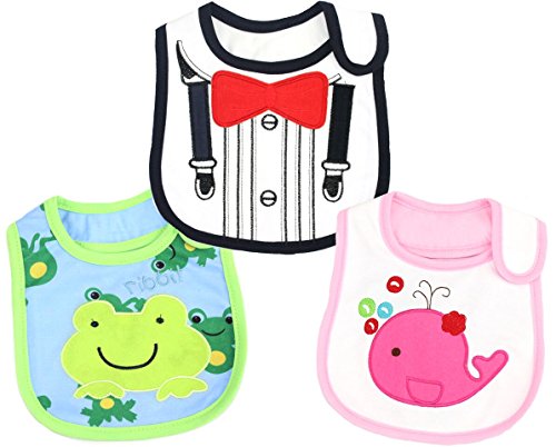 Felimoa 赤ちゃん よだれかけ 布エプロン (クジラ,蝶ネクタイ,カエル)