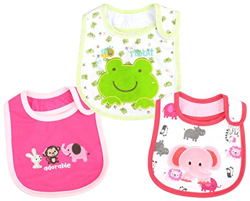 Felimoa 赤ちゃん よだれかけ 布エプロン (3匹動物,ゾウ,カエル)