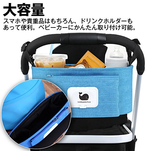 Felimoa ベビーカー用バック おしりふきケース付き ドリンクホルダー 大容量 多機能 オーガナイザー (ブルー)