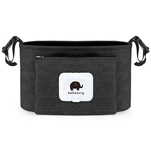 Felimoa ベビーカー用バック おしりふきケース付き ドリンクホルダー 大容量 多機能 オーガナイザー (ブラック)