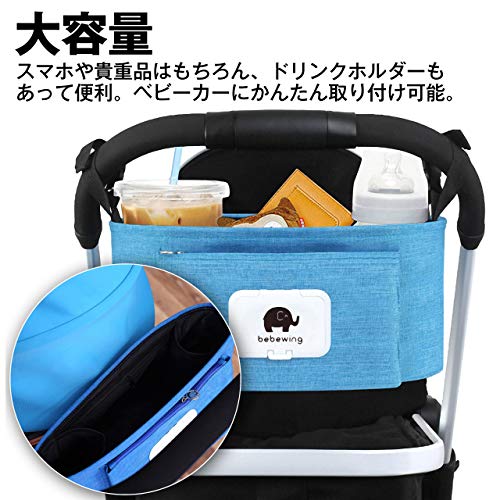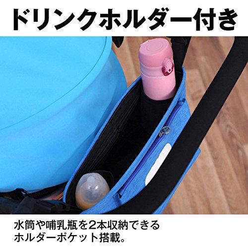 - 【仕様】 ベビーカー用バック。 お尻ふきケース付きなので、お尻ふきがさっと取り出せます。 スマホや貴重品はもちろん、ドリンクホルダーもあって便利。 ドリンクホルダーには、水筒や哺乳瓶を2本収納できるホルダーポケット搭載。 ベビーカーに簡単に取り付け可能。
