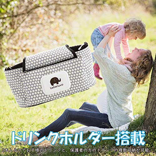 Felimoa ベビーカー用バッグ ドリンクホルダー 多機能小物入れ 収納 ティッシュケース付き