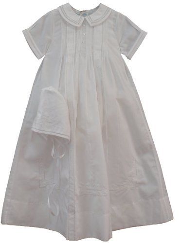 幼児男の子の兄弟によるホワイト従来の洗礼式ガウンfeltman長いピーターパンの襟と胸のレースの挿入とピンタックがデザインされます。このベビー男の子の洗礼ガウンの下部には刺繍された詳細に表示されます。男の子の洗礼式ガウンがマッチしている刺繍されたボンネットとスリップとボタンダウン、バックすることはできません。65 %ポリエステル、35 %コットンを使用しています。