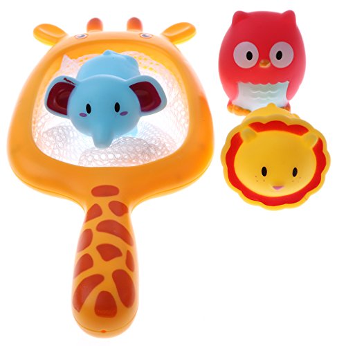 - 子供のための4個の漫画ビニール釣りネットフクロウライオン象の動物のセット/赤ちゃんの入浴の時間のおもちゃ