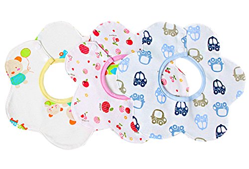FEOYA 赤ちゃん スタイ 3層 お食事エプロン 柔らかい 綿100% 防水層あり 360度回転 よだれかけ ベビー 花びら型 ビブ 出産祝い 3枚セット