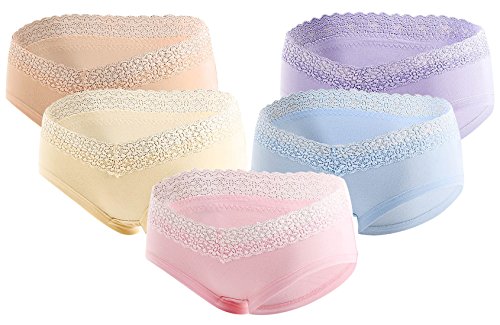 ローライズショーツ 妊娠 マタニティパンツ 産前産後用 レース インナー V字型 妊婦 パンツ ローライズ 下着 通気性 綿素材 XL/5枚セット