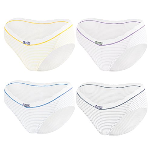 マタニティ ショーツ 大きいサイズ ローライズパンツ ストライプ 妊娠ショーツ レース 産前産後用 インナー 通気性 綿素材 V字型 パンツ 妊婦 L/5枚セット