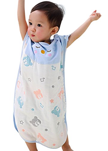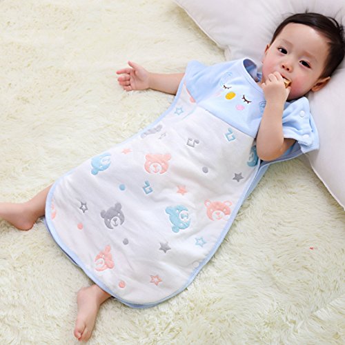 FEOYA スリーパー 新生児 出産祝い お誕生プレゼント 6重ガーゼ 綿100% 赤ちゃん キッズ 寝冷え防止 0歳~3歳【ベビー/ブルークマ】