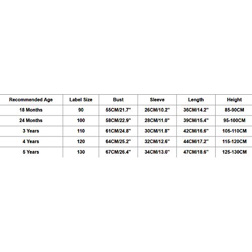 推奨年齢:18ヶ月。ラベルサイズ:90。バスト:55cm/21.7インチ。袖:26cm/10.2インチ。長さ:36cm/14.2インチ。身長:85~90cm。