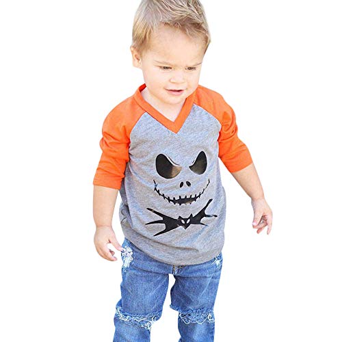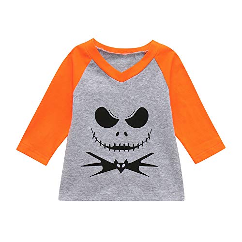 Fheaven (TM) 幼児 赤ちゃん 女の子 ハロウィン トップス 長袖 カートゥーン デビル プリント Tシャツ トップス ブラウス 3-4 Years オレンジ