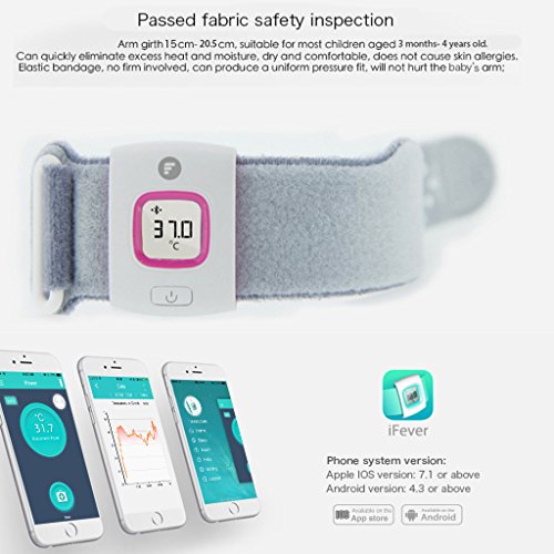 Fii ifever 赤ちゃん用体温計 発熱アラーム 体温記録 24時監視 スマートフォンアプリ対応 子供の健康管理 働くママに、出産祝いに! (バラ色)