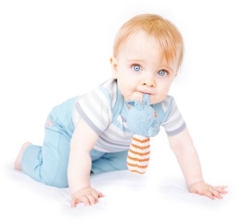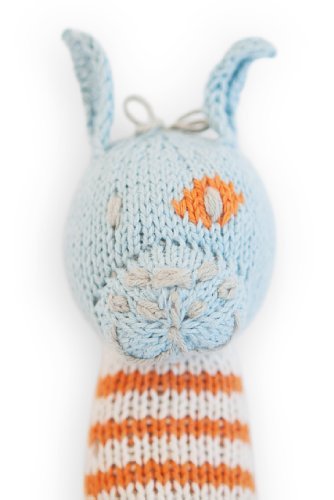 Hello munchkin, Welcome home! Are you ready to set sail around the world on the sea of your imagination? I am a mini rattle made with organic cotton yarn and stuffed with wool. I am hand-knit, fair-trade, and was made in Peru especially for you. I am the perfect size for your cute little hands to hold with ease, and my rattle will keep you engaged and entertained on our imaginary adventures.