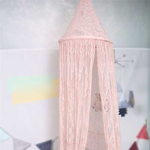 Firlar 蚊帳 天蓋カーテン ベビーベッドレース用蚊帳 テント式 インテリア お姫様ベット 部屋飾り ロマンチック 写真道具 防虫 防蚊 安眠 節電 (Pink Lace)