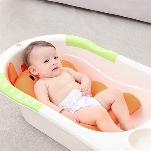 Firlar ベビーお風呂マット 沐浴サポートクッション ベビーバス用品 おふろマット バスチェア 赤ちゃん 新生児 シャワー スポンジマット可愛い 快適 風呂楽しい (Orange)