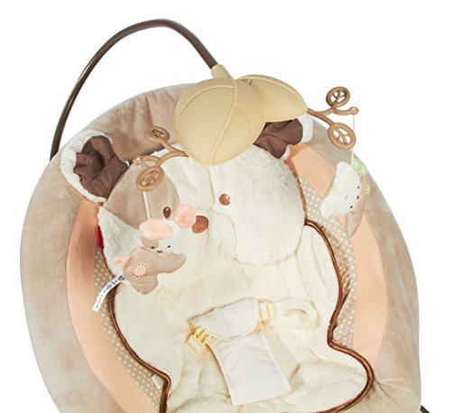 The My Little Snugapuppy Deluxe Bouncer is a soft and snuggly bouncer for baby, with toys to entertain and vibration to calm. It comforts baby with deluxe fabrics from head to toe. The head plush head snuggler supports baby's head and features a cute puppy face. The removable, cushy body insert provides extra comfort for baby. Overhead is a mobile with hanging toys to entertain baby with a one handed release for mom. The deluxe bouncer also has up to 20 minutes of soft music and sound effects with volume control on an easy to use 'soft touch' control panel. Pad is machine washable and has 3 pt. restraint for safety, and the frame has non skid feet to keep the bouncer in place.
