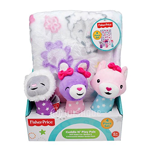 Fisher Price Cuddle N Play Pals;Super Soft Blanket 30 x 40 Polyester;3 Plush Shaker Rattles Lamb Bunny Rabbit Fox;Baby Gift Tag;NEW