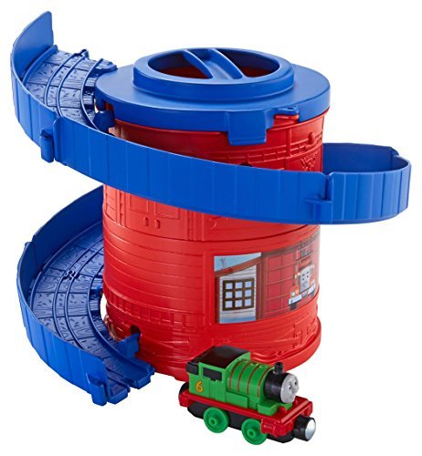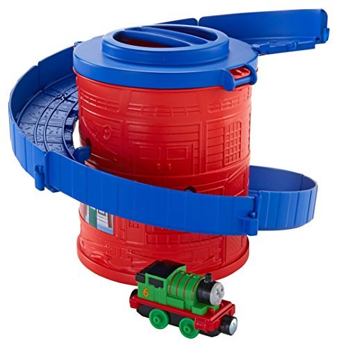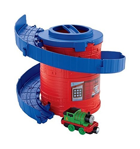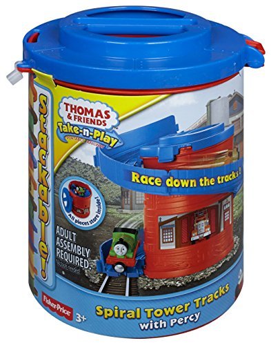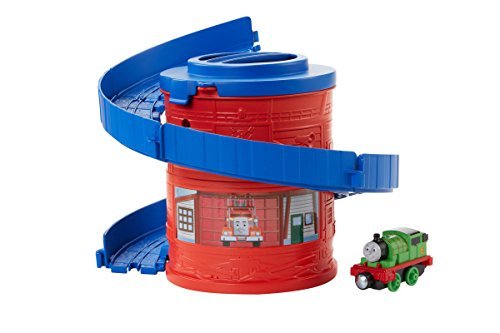 Spiral Tower Tracks with Percy is part of a starter train set assortment for the Thomas & Friends Take-n-Play die-cast line. This set includes a Percy train engine and features a built-in spiral loop of track for your train engines to race down! You can also "collect and connect" - buy all three in the collection and attach them together to make one higher spiral loop train set for your train engines! Tracks and train engines store inside canister package with carry handle for on-the-go fun. Each train set includes a train engine. Collection includes Spiral Tower Tracks with Thomas, Spiral Tower Tracks with Percy and Spiral Tower Tracks with Diesel (each sold separately and subject to availability).