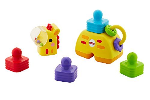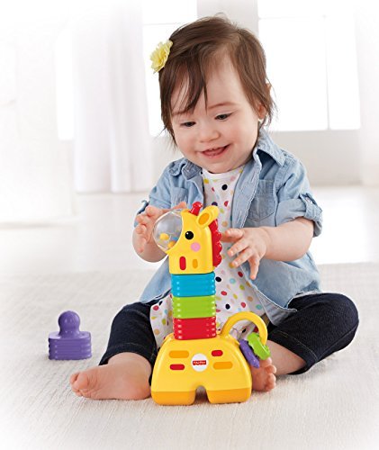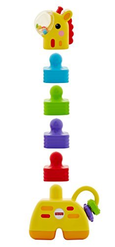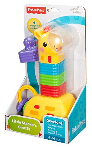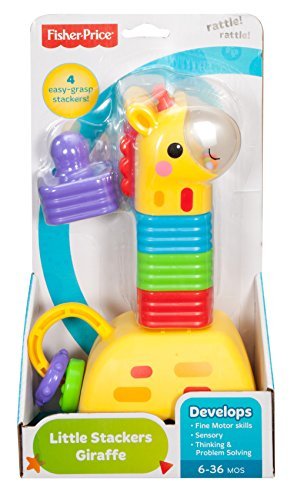 The Little Stackers Giraffe features 4 colorful stackers with a unique design that's easy for baby to grasp, hold & stack. Baby can stack each piece on top of the giraffe base, helping build fine motor skills, eye-hand coordination. Baby will love shaking the colorful rattle beads in the giraffe's nose and sliding & spinning the clacker beads on his tail. For lots of hands-on, stacking activities that help strengthen baby's development, the Fisher-Price Little Stackers Giraffe stands tall!.