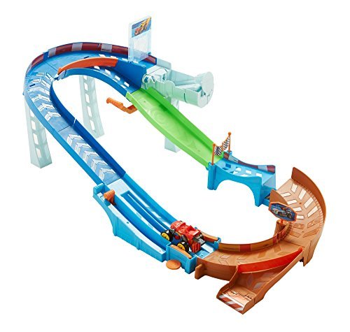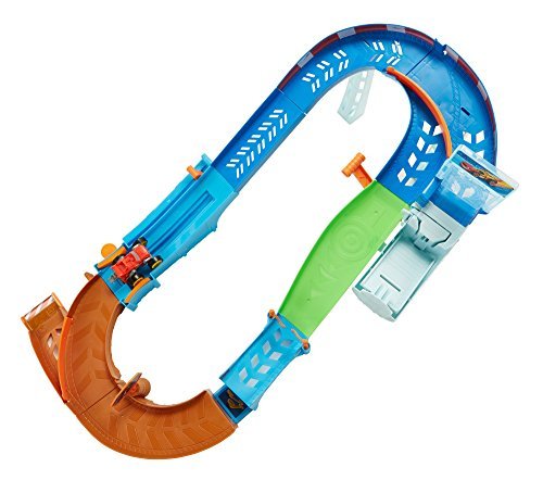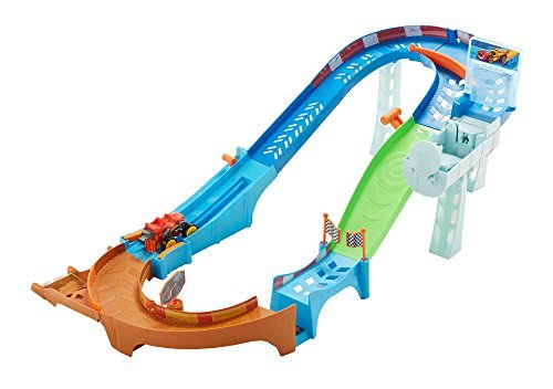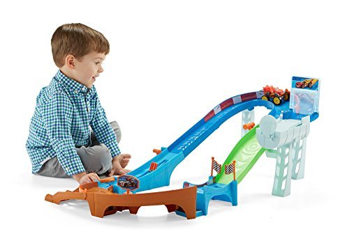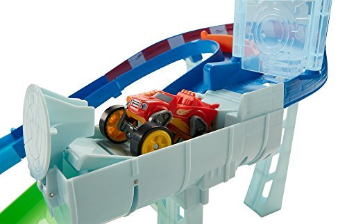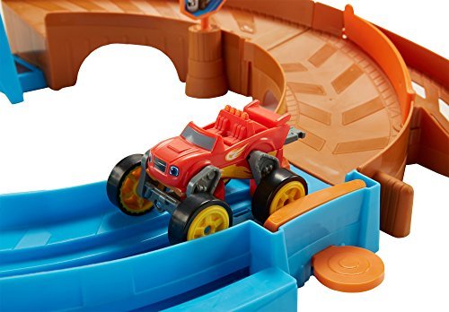 Blaze is off to the races on the Velocity Ville speedway! Use the turbo launcher to clear the jump and zoom around the speedway. Blaze is fast, but if he wants to win this race, he's going to need more speed than ever before. Switch the track rails to send him into the transforming turbo flipper. With the simple flip of a lever, Blaze transforms from a monster truck into a race car! Now he's got the Blazing Speed he needs to win the race!.