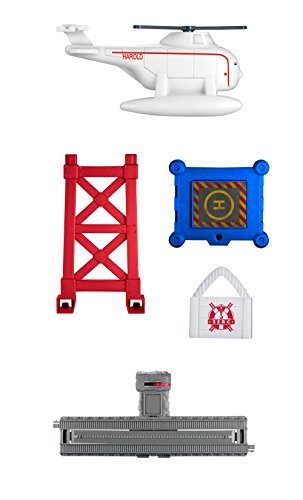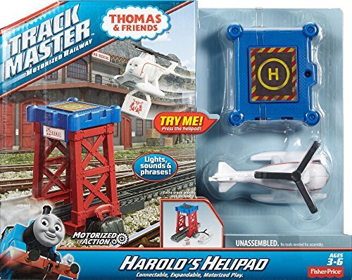 Harold, the heroic helicopter from Thomas & Friends, brings even more action-packed fun to your Track Master motorized railway with lights, sounds, and phrases! Connect the base of Harold's Helipad to your Track Master track, and send your motorized trains speeding through, or use the brake-track to stop them beneath. When you set Harold down on top of the helipad, the LED starts to flash and the alarm sounds - it's time for a rescue mission! You'll also hear realistic helicopter sound effects, and fun phrases from the show. For exciting search and rescue adventures, attach the included cargo piece to Harold's hook and send him soaring into action!.