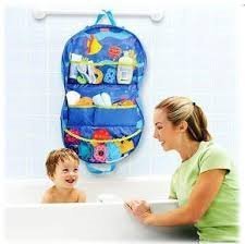 Large storage tote to hold all of baby's bathtime essentials while at home or on the go! Multiple pockets on inside allows for various items to be stored. Made of durable, mildew resistant material.