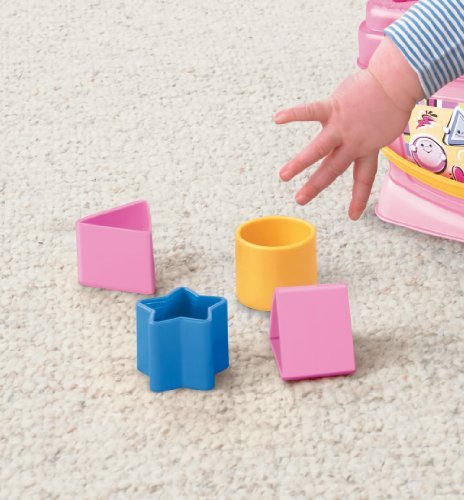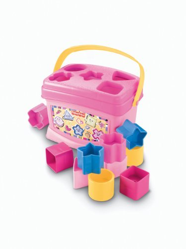 Ten bright blocks are ready for baby to drop into the open bucket or through the shape-sorting lid with Baby's First Blocks by Fisher-Price. Filling the bucket with blocks, dumping them out, and starting over is great for eye-hand coordination and other early skills. Then baby can move on to sorting and stacking, learning about identifying and matching shapes while having fun.