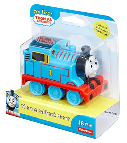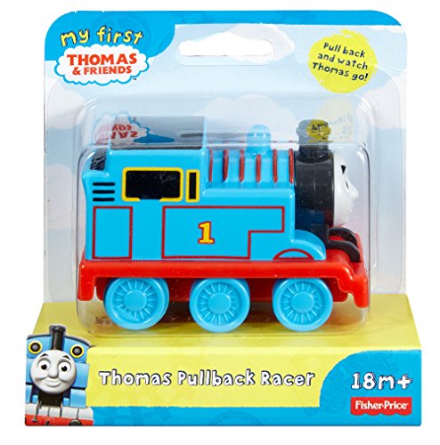 きかんしゃトーマスのおもちゃ、プルバックエンジンです。後ろに引いて手を離すと、トーマスが走り出します。電源を使わない、シンプルなおもちゃです。電車が大好きなお子さんへ。サイズは約幅9.2×高さ6.5×奥行5cm(本体)Fisher Price社の製品です。対象年齢1歳半以上。