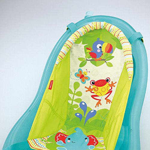 Baby and mom will both enjoy their bath time experience with the Rainforest Friends tub;3 stages of use include: newborn, infant, toddler;Removable stopper can be used to support newborn in reclined position;Baby and mom will both enjoy their bathtime experience with the Rainforest Friends tub;Includes an alligator sifter and a hippo pouring cup;Features a plug for draining and a hook for hanging and easy drying
