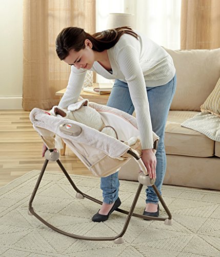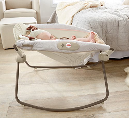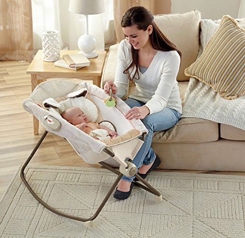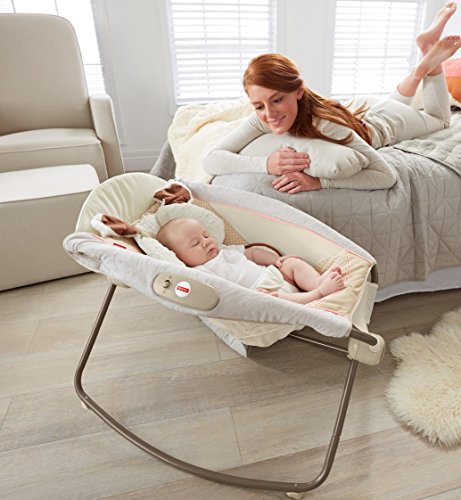 Rocks with a gentle push to soothe or stimulate baby;Sleeper & playtime seat in one;For issues, please call Fisher-Price Customer Service: 800-432-5437;Switch on calming vibrations; Linkable clacker toy;Supportive seat back, comfy incline, deluxe fabrics & plush newborn insert; Compact fold for portability & storage