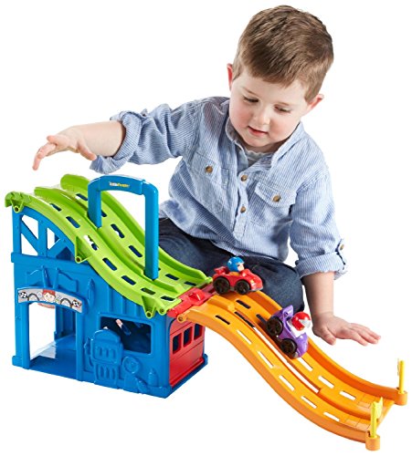 It's a race track that's a car carrier. It's a car carrier that's a race track. The Little People Wheelies Race and Chase Carrier is both-that's the beauty of it. When it's time to race, the track folds out, and kids can set the two Wheelies cars (included) at the top, send them zooming down the ramp and see which one wins! When it's time to put everything away for another day, the track folds back up, and the Wheelies cars store right inside the carrier. Pick it up by the easy-carry handle, and head for the next racing destination.
